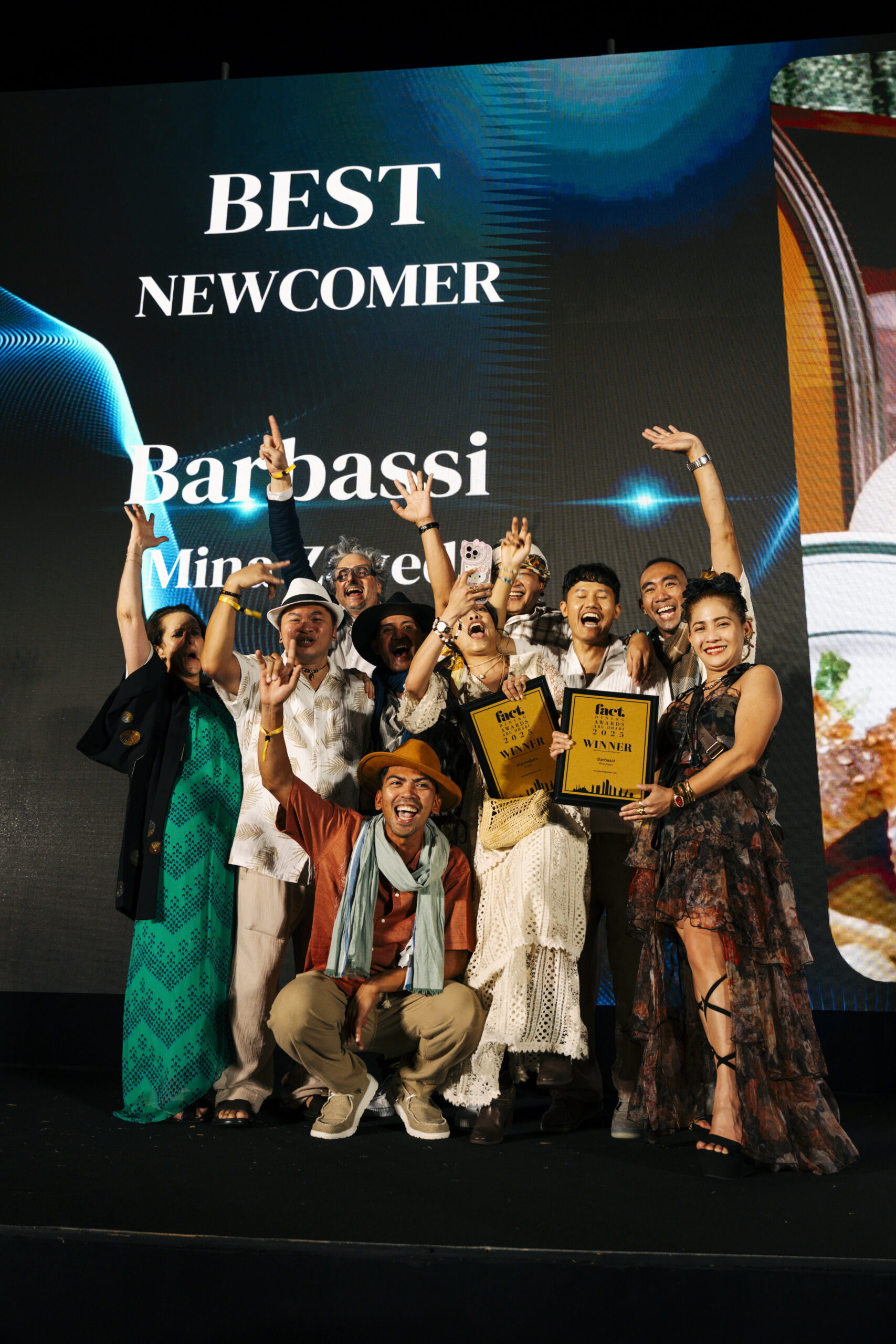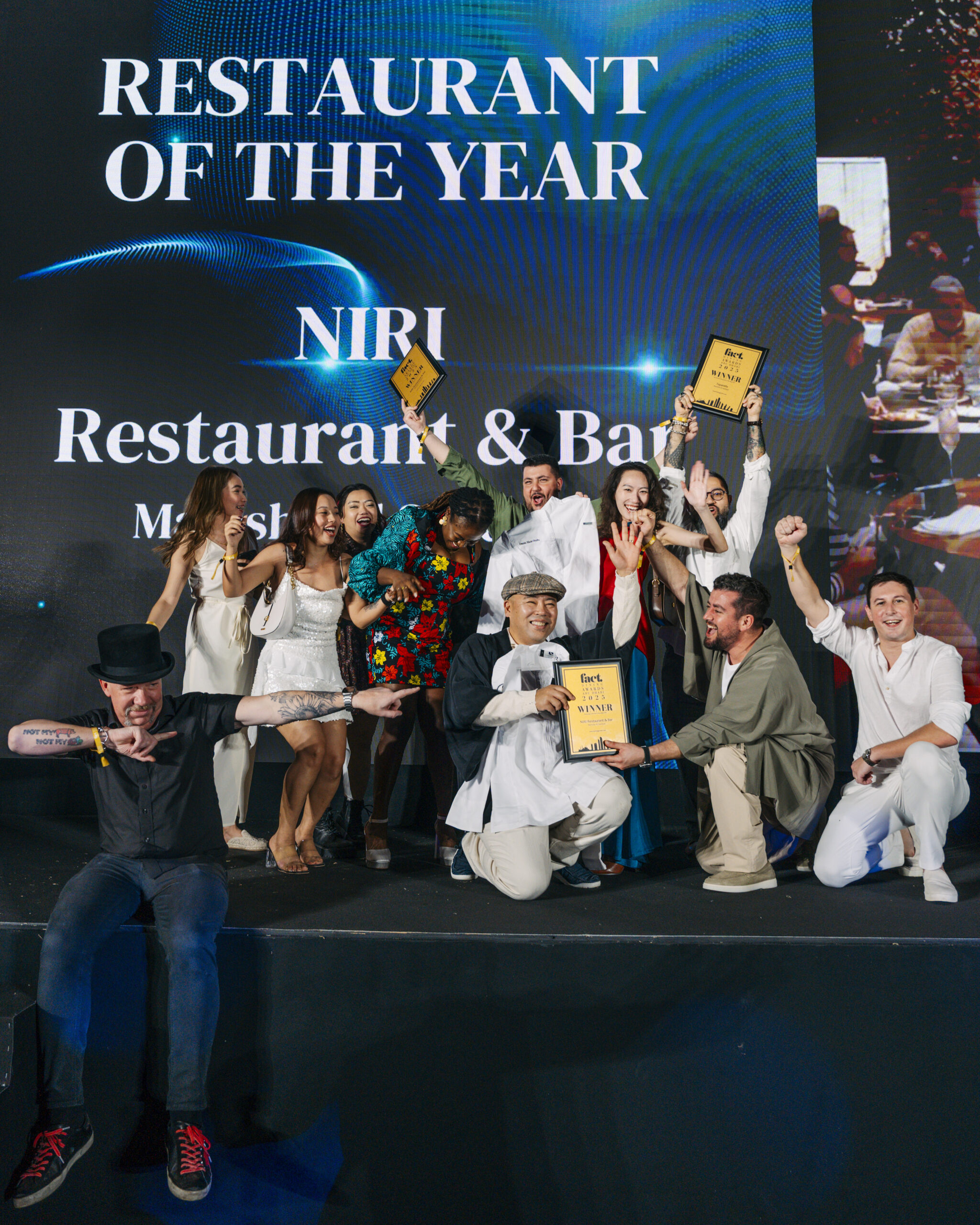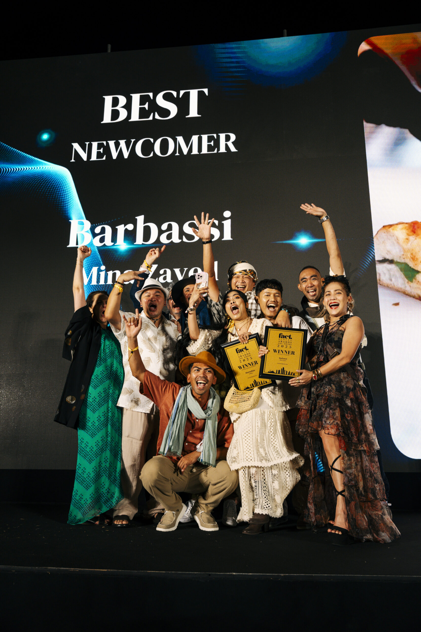 Notable honours included Best Newcomer, awarded to Barbassi in Mina Zayed, and Favourite Newcomer, which went to Blu Pizzeriá at Saadiyat Island. NIRI Restaurant & Bar at Mamsha Al Saadiyat received the prestigious Restaurant of the Year award for the third year in a row. Other big winners were restaurants located in five-star hotels such as Emirates Palace Mandarin Oriental, Four Seasons Hotel Abu Dhabi, Rosewood Abu Dhabi, and The St. Regis Saadiyat Island Resort, alongside homegrown success stories such as Antonia and Marmellata.