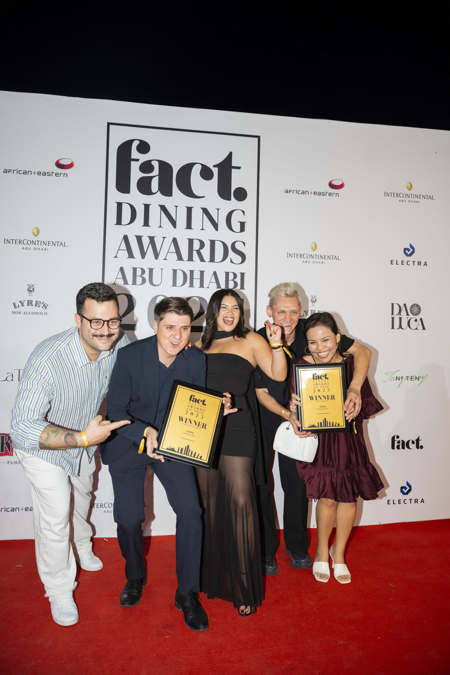 31 October 2025, Abu Dhabi, UAE – The eleventh annual FACT Dining Awards Abu Dhabi took place on Thursday, 30 October at the picturesque waterfront setting of InterContinental Abu Dhabi. A total of 49 awards were handed out across 25 categories, celebrating over 200 nominees, with more than 55,000 unique online votes cast by the public.