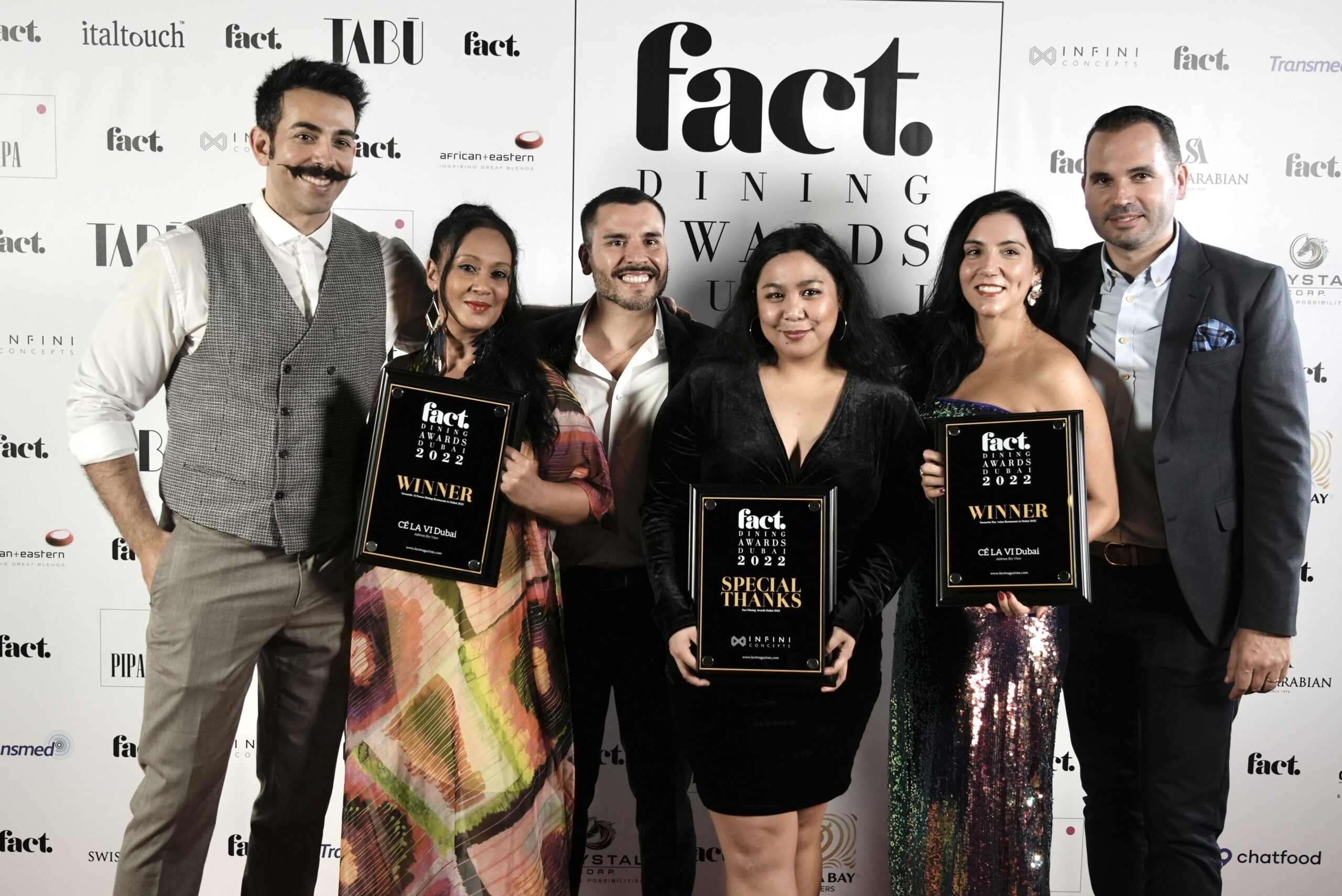 The sixth annual FACT Dining Awards Dubai ceremony took place on Wednesday, 16 November, live from TABŪ at The St. Regis Downtown Dubai. 87 awards were given out across 43 categories, covering more than 400 nominees and 60,000 online votes cast by the public.